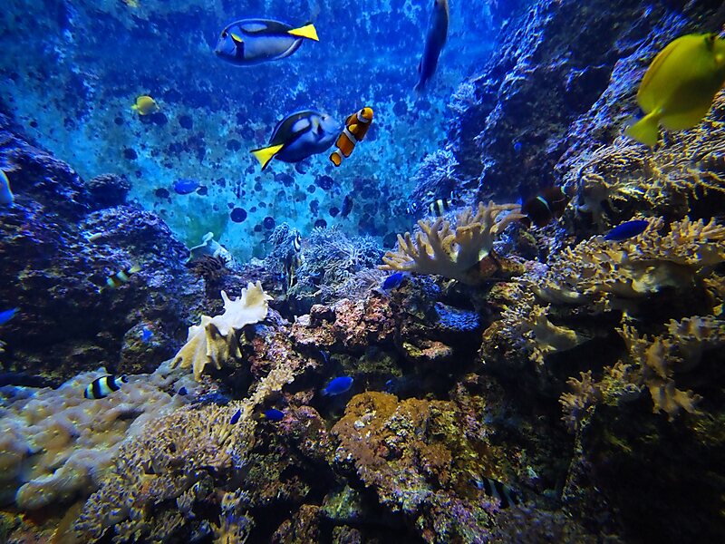 Discover the fascinating ocean life and learn about animal species from different oceans and seas, including manta rays, bottlenose dolphins, sharks and much more. The aquarium is home to more than 800 different species and is divided into 10 geographical zones including habitats of East Africa, Red Sea, or South China Sea.
