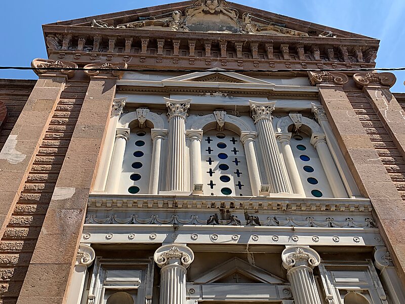 The erection commenced in the beginning of the 19th century and was completed in 1935. The architect was the native of the island Argyris Adalis, a student of Ernst Ziller. The architectural order follows the cross-in-square type; however, the monument constitutes a combination of elements from contemporary architectural trends that prevailed in the Western Europe. Gothic elements are prevalent as well, adding an impressiveness and a distinctive style to the monument.