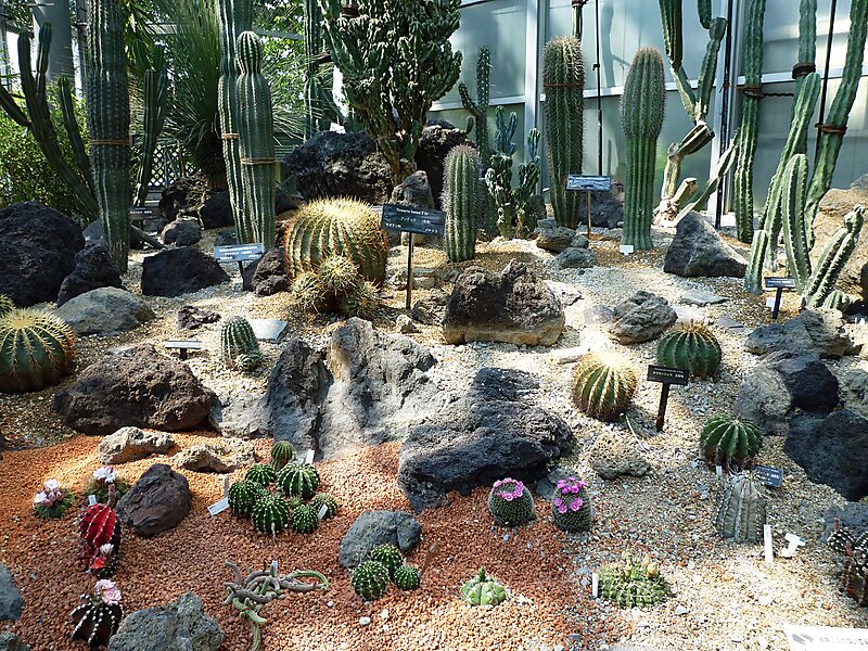 The gardens were constructed between 1987 and 1989, and currently contain about 15,000 plants representing 2,600 species from various climatic zones. Total floor space is about 6,900 m² with a maximum height of 30 meters. The conservatory is divided into a number of cool and hot houses as follows: