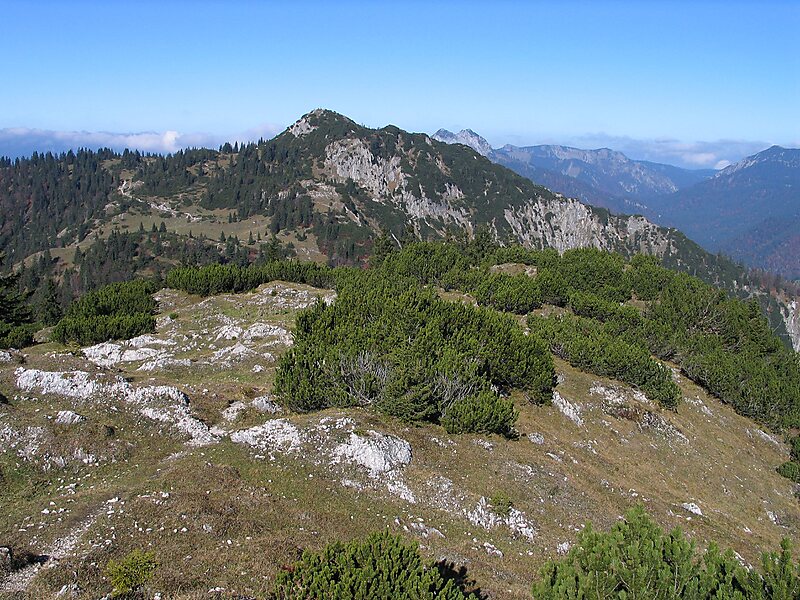 The peak can be reached after an easy hike from Kreuth over the Geißalm and Königsalm. The route via the Wolfsschlucht, on the other hand, is made secure by wire cables. The Blauberge are connected to the East side of the Schildenstein.