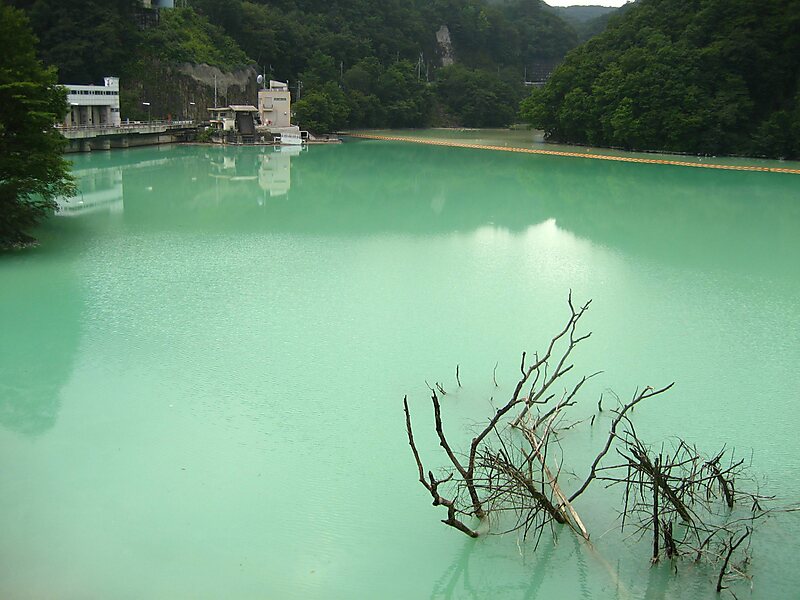 Shinaki Dam is a dam in the Gunma Prefecture of Japan. Shinaki dam was constructed to neutralize strong acid water that flowed from Kusatsu Onsen. Calcium carbonate is used for neutralizing.