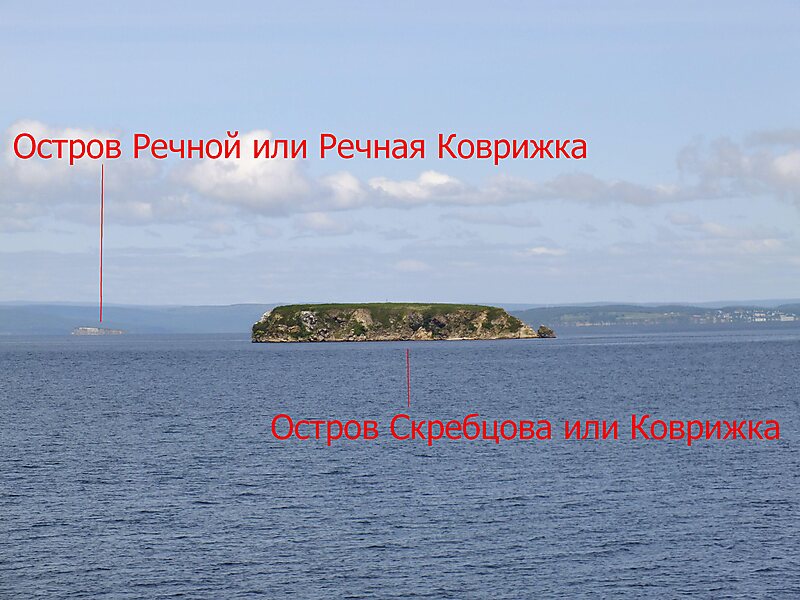 Skrebtsova Island, popularly known as Kovrizhka, is an island in the Amur Bay, Sea of Japan, 2 km north-west of the coast of Vladivostok. Named in 1863 in honor of M. L. Skrebtsova who participated in hydrographic research of Peter the Great.