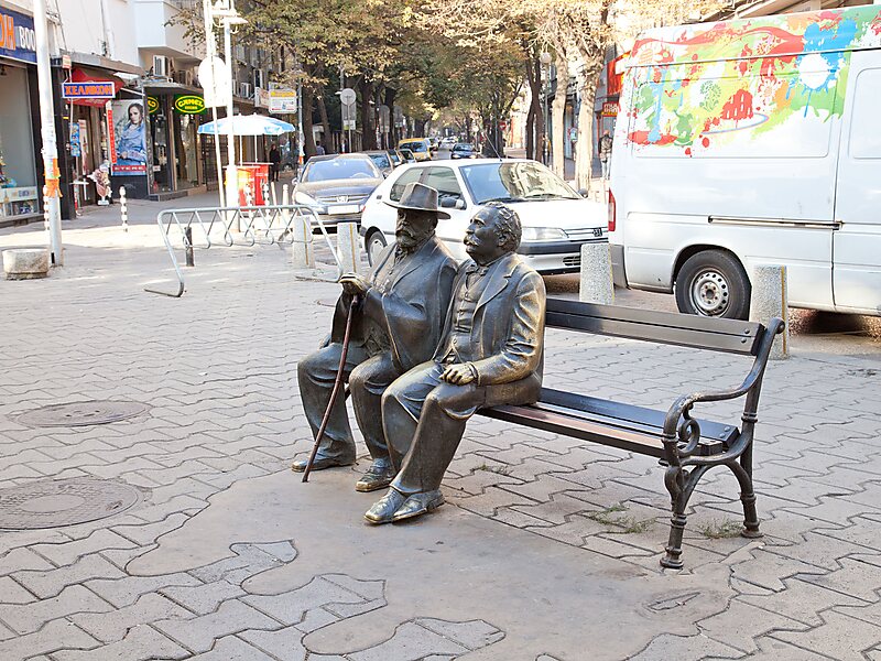 Slaveykov Square is one of the most popular squares in Sofia, the capital of Bulgaria. It is named after Bulgarian writers Petko and Pencho Slaveykov, father and son. A sculpture of the two sitting on a bench is one of its main landmarks.