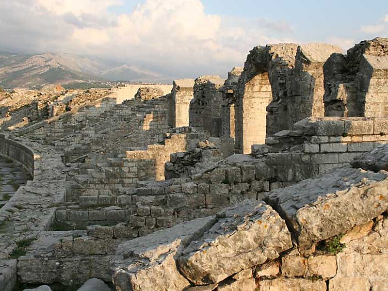 Extensive ruins of a former Roman settlement - do not miss the amphitheatre, public baths and the Early Christian cathedral remains.