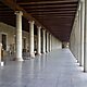 A stoa, in ancient Greek architecture, is a covered walkway or portico, commonly for public use, since this was the way how Stoics gathered, taught and discussed their philosophy. Early stoas were open at the entrance with columns, usually of the Doric order, lining the side of the building; they created a safe, enveloping, protective atmosphere.