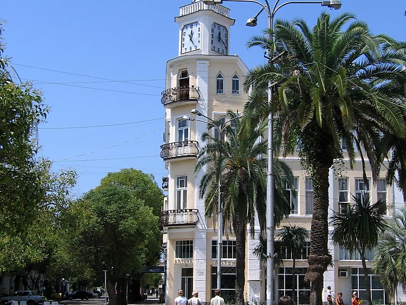 Sukhumi or Sokhumi, also known by its Abkhaz name Aqwa, is a city in a wide bay on the Black Sea's eastern coast. It is both the capital and largest city of the Republic of Abkhazia, which has controlled it since the Abkhazia war in 1992-93. The city, which has an airport, is a port, major rail junction and a holiday resort because of its beaches, sanatoriums, mineral-water spas and semitropical climate.
