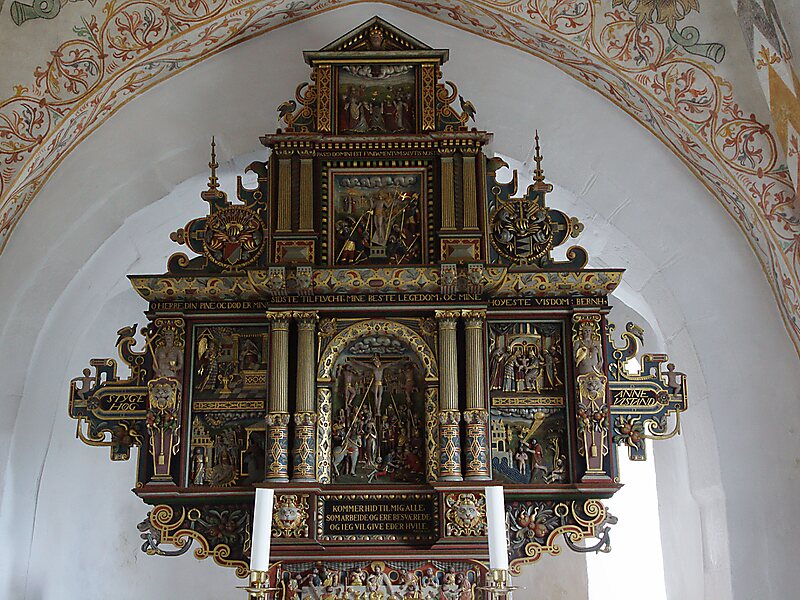 Sulsted Church, located in Sulsted, a small Danish town in northern Jutland, just north of Aalborg, was constructed c. 1150–1200 and features a large number of frescos or kalkmalerier, all created in 1548 by Hans Maler from Randers.