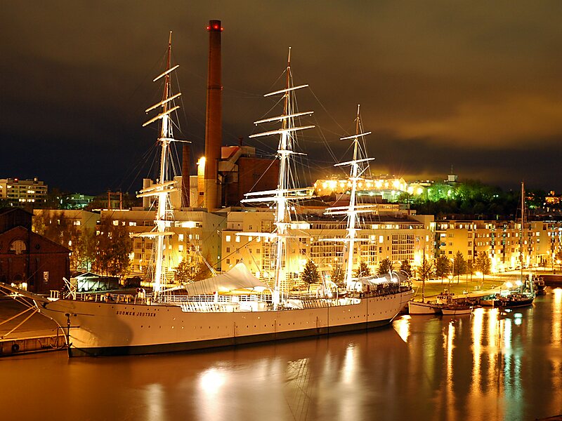 Suomen Joutsen is a steel-hulled full-rigged ship with three square rigged masts. Built in 1902 by Chantiers de Penhoët in St. Nazaire, France, as Laënnec, the ship served two French owners before she was sold to German interest in 1922 and renamed Oldenburg. In 1930, she was acquired by the Government of Finland, refitted to serve as a school ship for the Finnish Navy and given her current name. Suomen Joutsen made eight long international voyages before the Second World War and later served in various support and supply roles during the war. From 1961 on she served as a stationary seamen's school for the Finnish Merchant Navy. In 1991, Suomen Joutsen was donated to the city of Turku and became a museum ship moored next to Forum Marinum.