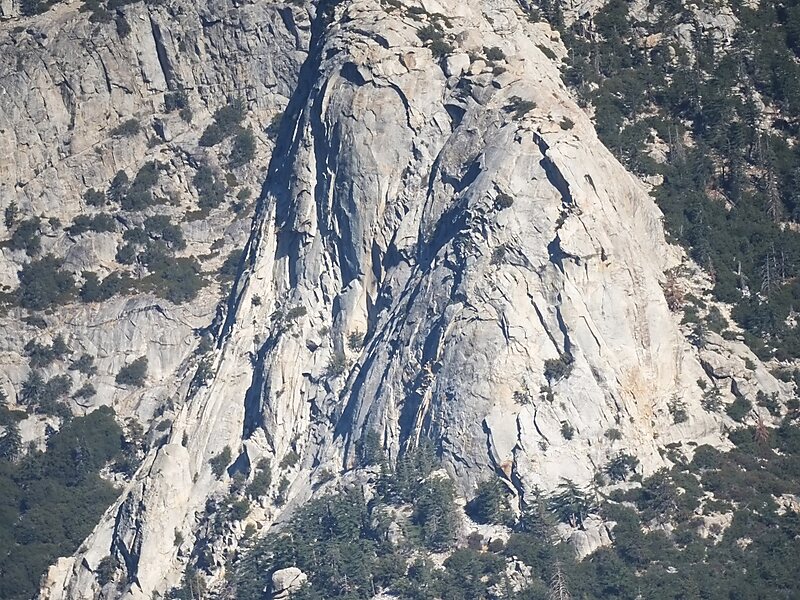 Tahquitz Peak is a granite, 8,846-foot-tall rock formation located on the high western slope of the San Jacinto mountain range in Riverside County, Southern California, United States, above the mountain town of Idyllwild. Tahquitz has a steep approach hike, leading to a roughly 1000-foot face. Tahquitz, which can refer to both the rock outcrop and the outcrop's parent peak, is a popular hiking destination to the fire lookout station and the rock climbing area.