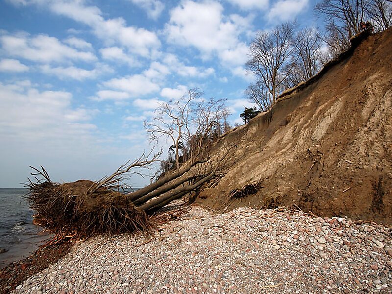 The hill is a parabolic dune created by aeolian processes on a moraine ridge. The location is now subject to strong erosion by the Baltic Sea, which is exposing various-sized boulders from the moraine. As a consequence, boulder rubble has accumulated on the so-called beach. As the bluff's base is destroyed, earth slips down the bluff's entire face, in an example of mass wasting.