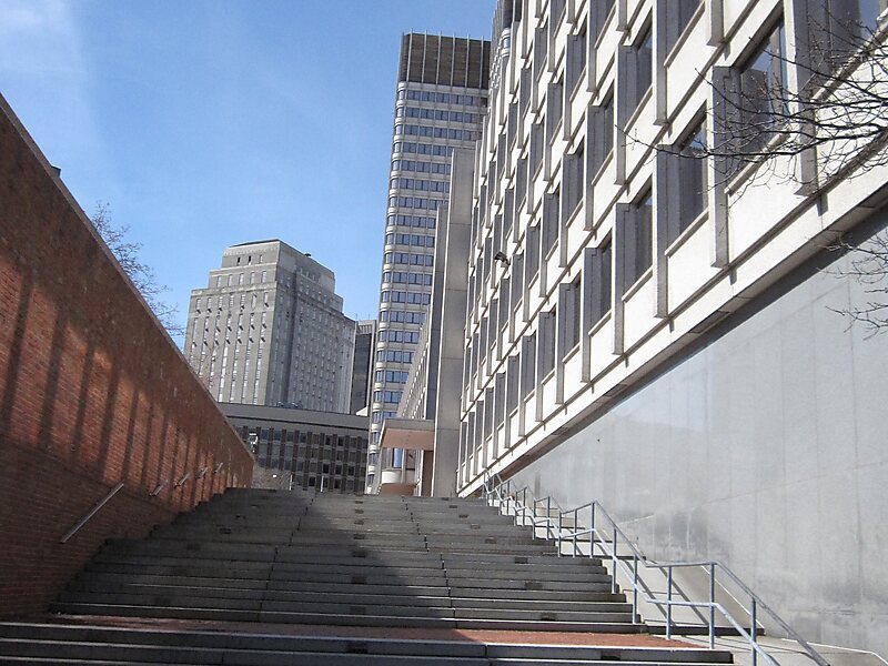 John Fitzgerald Kennedy Federal Building is a United States federal government office building located in the Government Center area of Boston, Massachusetts, adjacent to City Hall Plaza and diagonally across from Boston City Hall. An example of 1960s modern architecture, and designed by Walter Gropius and The Architects Collaborative with Samuel Glaser, it is a complex that consists of two offset 26-floor towers that sit on-axis to each other and a low rise building of four floors that connects to the two towers through an enclosed glass corridor. The two towers stand at a height of 387 feet. The complex was built in 1963-1966. It was listed on the National Register of Historic Places in 2021.