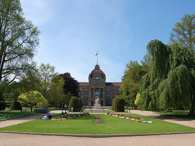 The Place de la République is one of the main squares of the city of Strasbourg, France. It is surrounded on three sides by five buildings only, of which none is residential: the Palais du Rhin, the National and University Library, the Théâtre national de Strasbourg, the Préfecture of Grand Est and Bas-Rhin, and the tax center Hôtel des impôts. All of these buildings are classified as monuments historiques. The fourth side of the square is devoid of buildings.