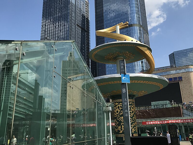 Tianfu Square is a transfer station of the Chengdu Metro on Lines 1 and 2.