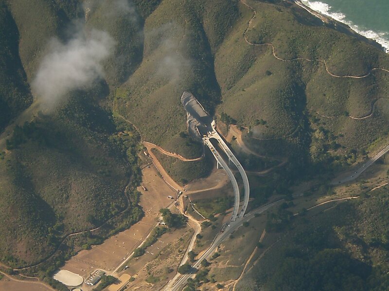 The Devil's Slide tunnels, as they are usually called, are the second and third longest road tunnels in California at 4,149 ft northbound, and 4,008 ft southbound. By comparison the longest road tunnel currently in California, the Wawona Tunnel on Highway 41 in Yosemite National Park, is 4,233 ft.