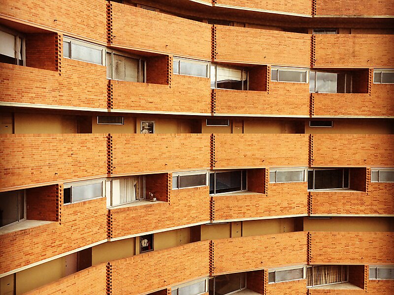These high-sky residential buildings make a nice dominating feature of city centre. Orange-red silhouettes!