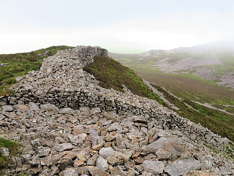 Tre'r Ceiri is one of the most spectacular ancient monuments in Wales. The settlement is surrounded by stone walls that are largely intact, and which reach up to 4 metres in some places. Within the walls are ruins of about 150 stone houses, which would have had turf roofs. During Roman times, it may have housed up to 400 people. Historian John Davies suggests that because the settlement is so far above sea level, the huts served as habitations for summer shepherds who also had winter dwellings in the lowlands.