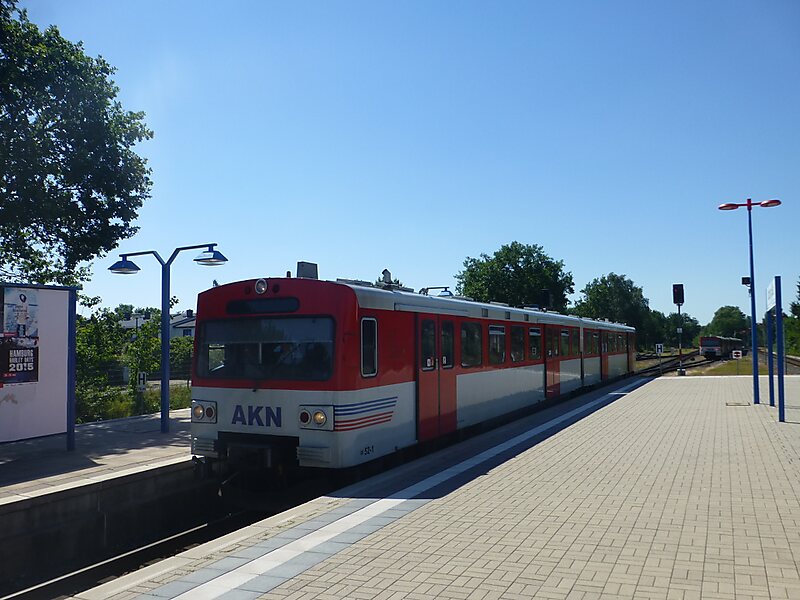 Ulzburg Süd station is a hub on the AKN Eisenbahn network in the municipality of Henstedt-Ulzburg in the German state of Schleswig-Holstein. It is where AKN’s trunk line and the Alster Northern Railway, which are now traversed by AKN lines A1 and A2, meet. In addition, trains on line A3 begin and end in Ulzburg Süd.