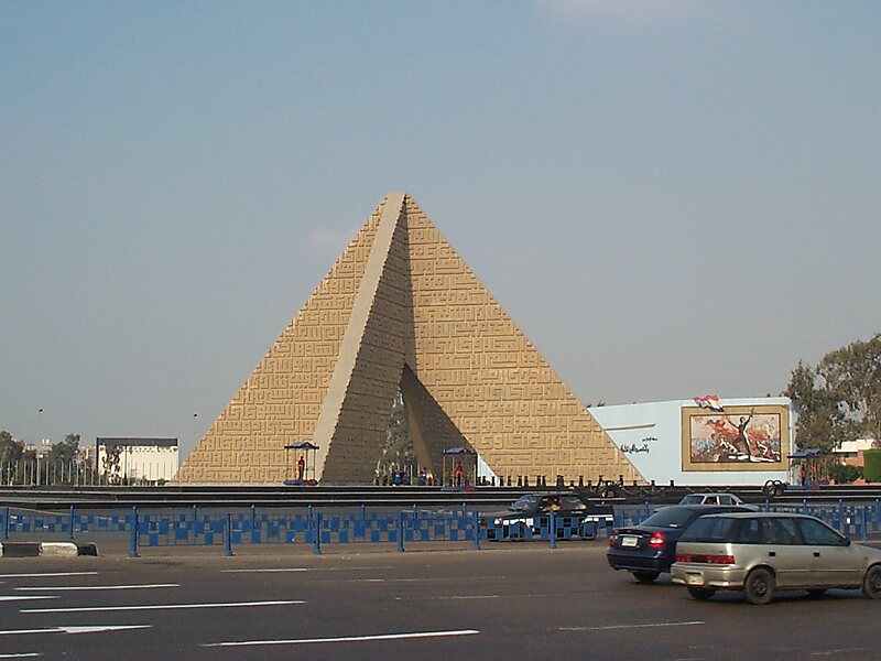 The Unknown Soldier Memorial in Cairo is a pyramid-shaped monument in Nasr City. Its construction was ordered by president Anwar Sadat in 1974 in honor of Egyptians and Arabs who lost their lives in the 1973 October War. It was inaugurated in October 1975. The site was also chosen for the president's tomb after his assassination in October 1981.