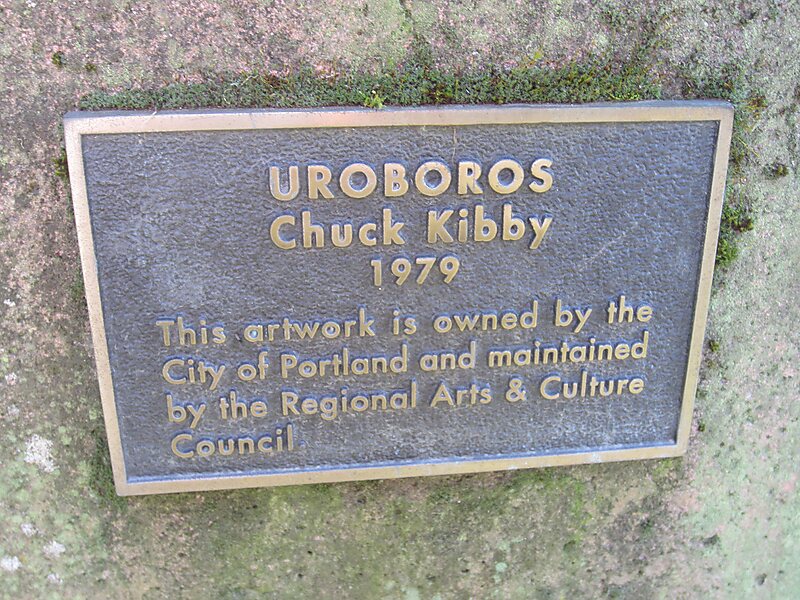 Uroboros is an outdoor 1979 sculpture by Charles Kibby, located at Westmoreland Park in the Sellwood neighborhood of southeast Portland, Oregon. It is a modern depiction of the uroboros, an ancient Egyptian and Greek symbol depicting a serpent or dragon eating its own tail.