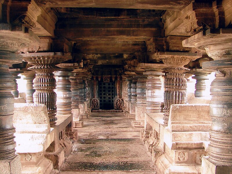 The Veera Narayana temple is located in Belavadi, a village in the Chikkamagaluru district of Karnataka state, India. The temple was built during the rule of the Hoysala Empire. Known to legend as Ekachakranagara, Belavadi is said to be the place mentioned in Mahabharatha where Pandava prince Bheema killed the demon Bakasura and protected the village and its people. Belavadi is 29 km southeast of Chikmagalur town on the Chikmagalur-Javagal highway. It is a short distance from the famous temple towns of Belur and Halebidu.