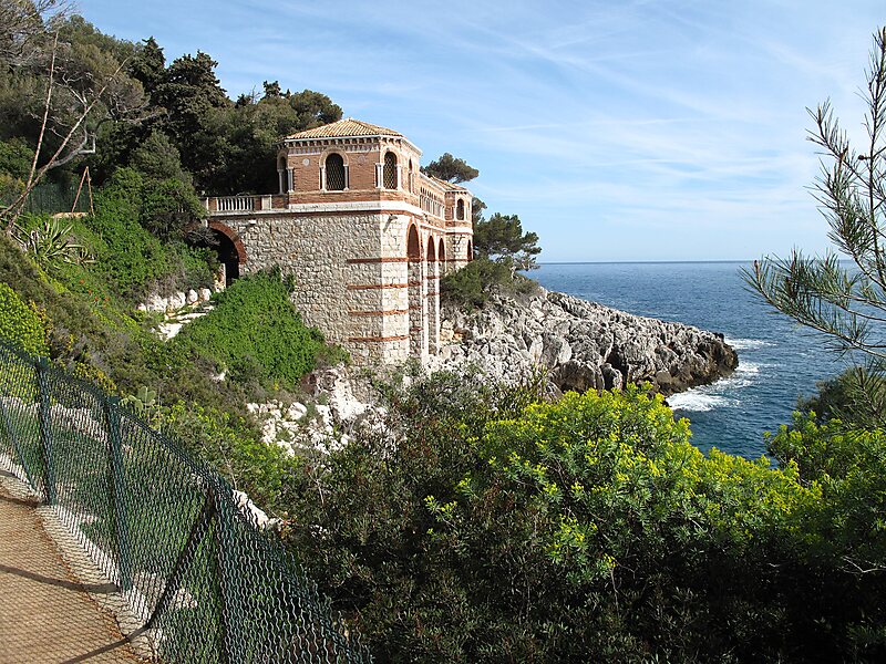 The villa was built c. 1904 in Neo-Byzantine style by architect Edouard Arnaud for Cyprienne Dubernet, the widow of Grands Magasins du Louvre's proprietor Olympe Hériot. It is adjacent to Villa Cyrnos.The gardens, laid out in 1909, slope steeply down to the sea. Designs for the gardens, as well as the villa interiors, were provided by Italian painter Raffaele Mainella, who did likewise for Villa Torre Clementina, also in Roquebrune-Cap-Martin.