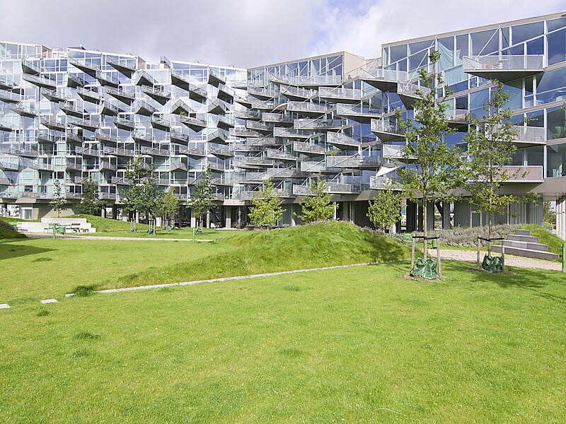 VM Houses is a housing project consisting of two adjacent apartment buildings in Ørestad, Copenhagen, Denmark. Designed by JDS Architects and Bjarke Ingels Group, the M House with 95 units was completed in 2004 and the V House with 114 units, in 2005.