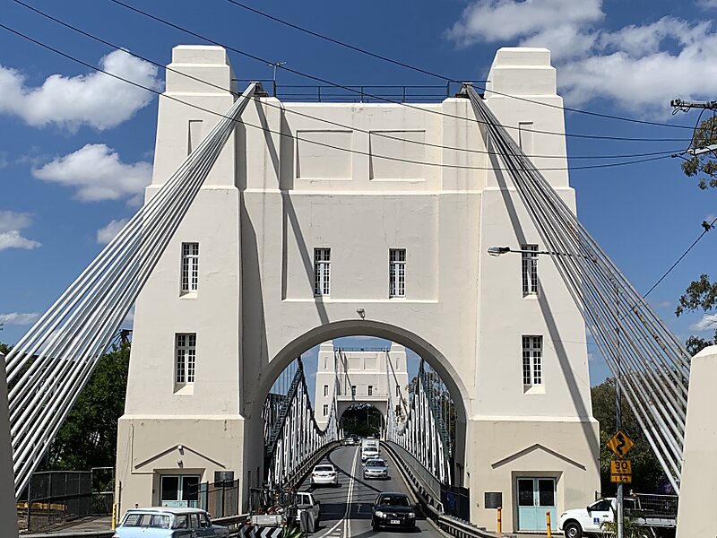 The Walter Taylor Bridge is a heritage-listed suspension bridge crossing the Brisbane River between Indooroopilly and Chelmer in Brisbane, Queensland, Australia. It is shared by motor traffic and pedestrians and is the only habitable bridge in the Southern Hemisphere.