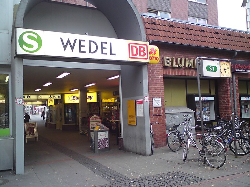 Wedel station is a railway station on the Altona-Blankenese line, served by the rapid transit trains of the Hamburg S-Bahn, located in Wedel, Germany. It is a terminus of the line S1.