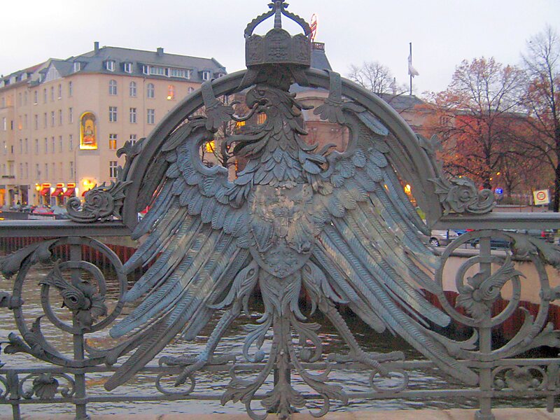 The Weidendammer Bridge is a 73-metre-long bridge where the Friedrichstraße crosses the Spree river in the central Mitte district of Berlin, Germany. It is notable for its ornate wrought iron railings, lanterns, and Imperial eagles.