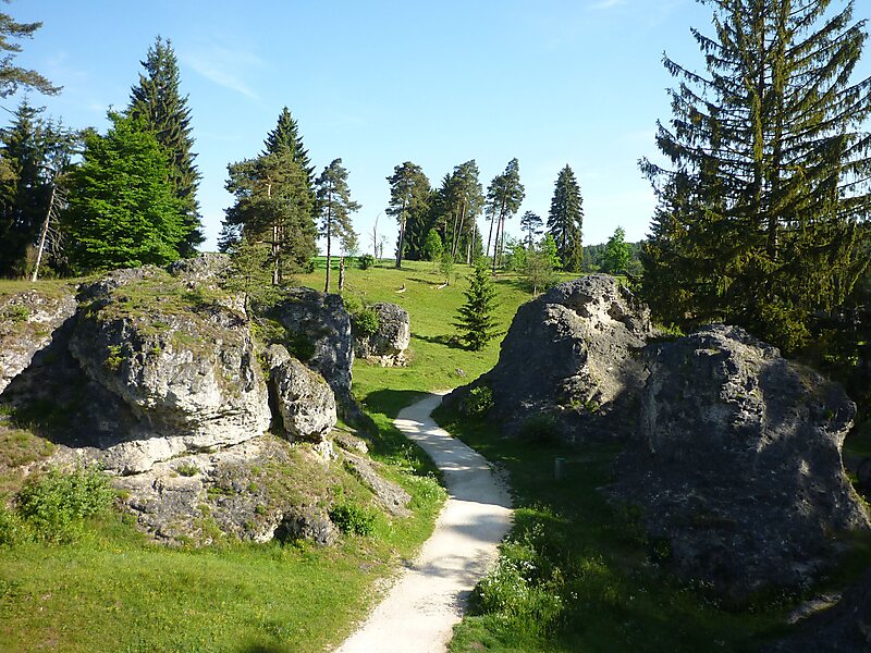 Wen Valley is a typical dry valley of the Schwäbische Alb northwest of Steinheim am Albuch. Wen Valley is a popular recreation area and until 2009 it was popular for cross golf, parkour and bouldering, but this is since June 2009 as compensation for the erection of Essingen Windpark prohibited. Several signs indicate this.