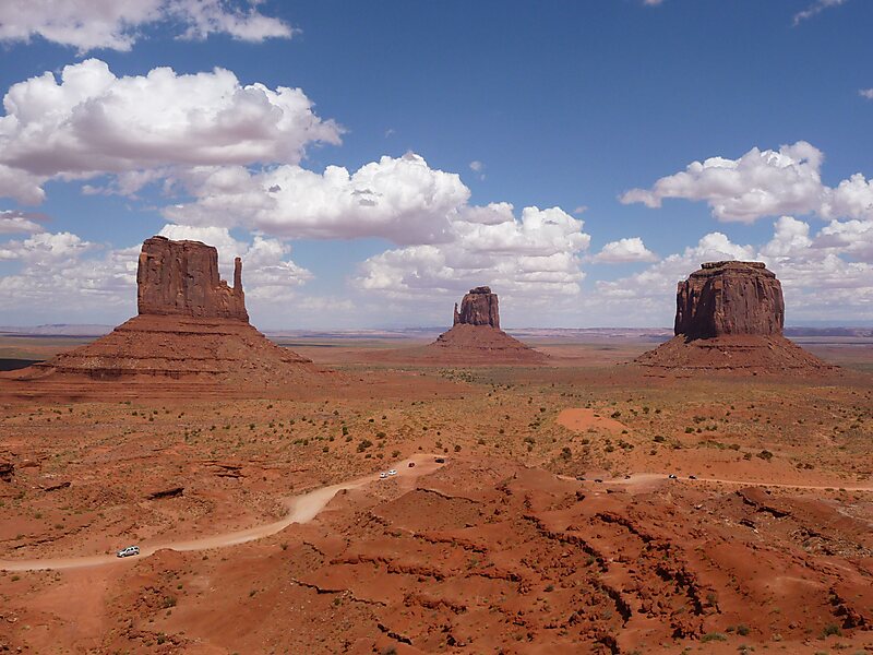 The West and East Mitten Buttes are two buttes in the Monument Valley Navajo Tribal Park in northeast Navajo County, Arizona. When viewed from the south, the buttes appear to be two giant mittens with their thumbs facing inwards.