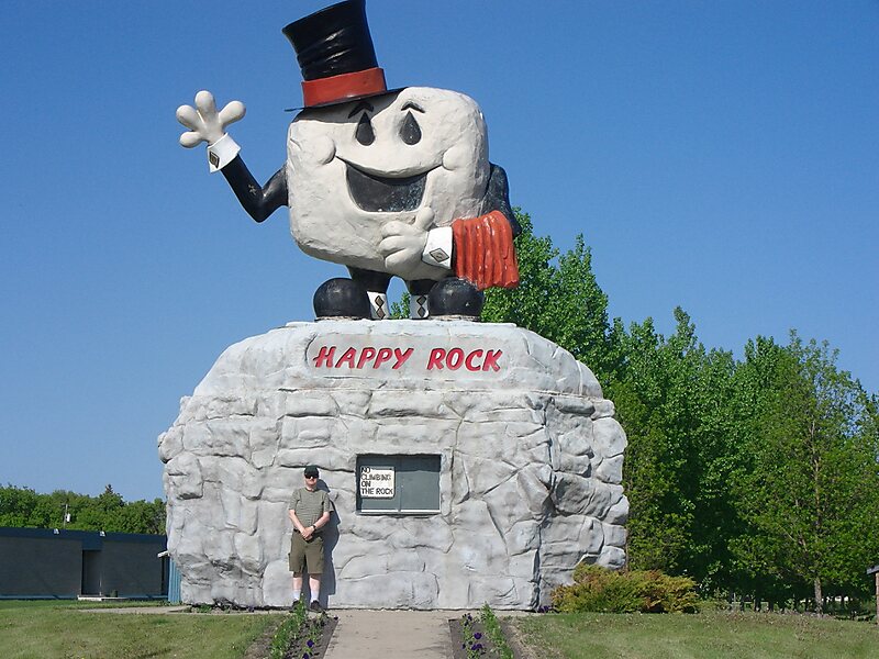 Happy Rock is a roadside attraction in Gladstone, Manitoba, Canada. It is on the northeast side of Highway 16. The large statue also serves as the visitor information centre for the town.