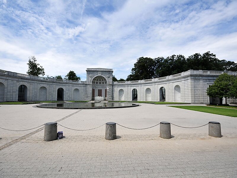 The structure that houses the memorial was originally known as the Hemicycle, and was built in 1932 to be a ceremonial entrance to the cemetery. It never served this purpose, however, and was in disrepair by 1986. Congress approved the memorial in 1985, and the Hemicycle approved as the site for the memorial in 1988.