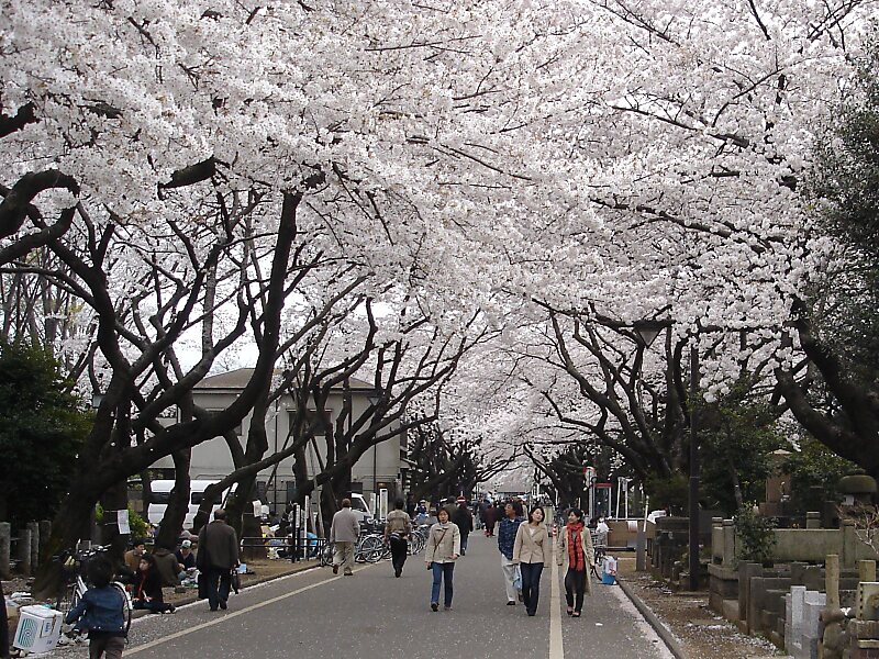 Yanaka Cemetery is a large cemetery located north of Ueno in Yanaka 7-chome, Taito, Tokyo, Japan. The Yanaka sector of Taito is one of the few Tokyo neighborhoods in which the old Shitamachi atmosphere can still be felt. The cemetery is famous for its beautiful cherry blossoms that in April completely cover its paths, and for that reason that its central street is often called Cherry-blossom Avenue.