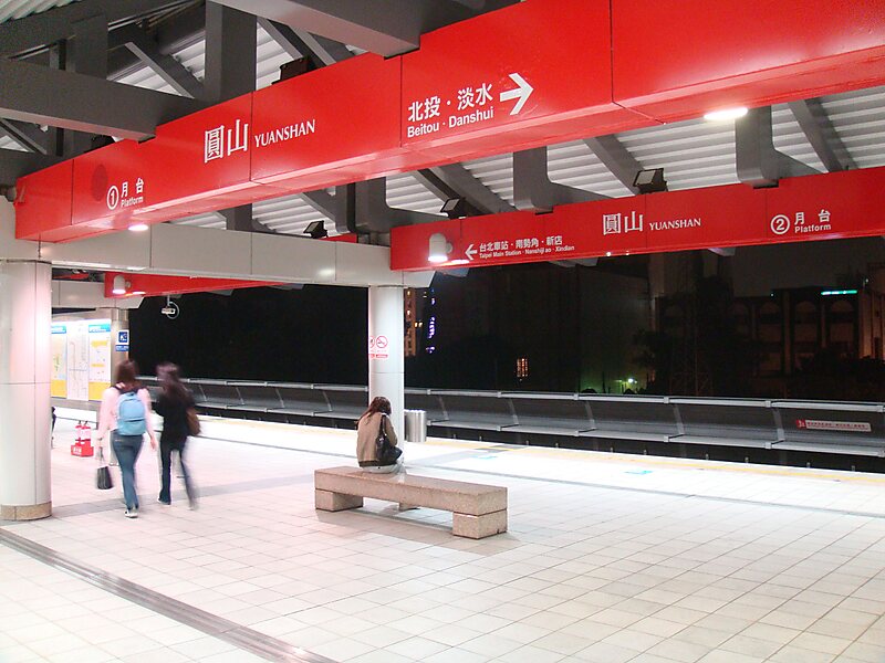 Yuanshan is a metro station in Taipei, Taiwan served by Taipei Metro. It is a station on the Tamsui–Xinyi line. There was a station of the same name on the now-defunct Tamsui railway line.