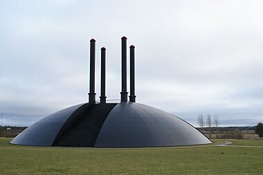 Elia is a sculpture created by Ingvar Cronhammar in Herning, Denmark. It is a large, spherical dome with four columns reaching 32 meters.