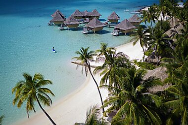 El Four Seasons Resort Bora Bora ofrece vistas a las magníficas aguas turquesa de una playa privada y cuenta con bungalows lujosos sobre…