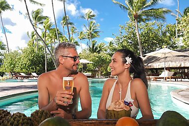 Este complejo de lujo tiene una playa privada de arena blanca y ofrece alojamientos frente al mar, en Punta Matira.