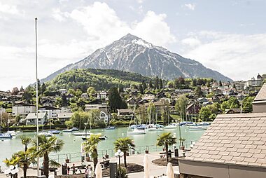 Enjoy the view of the most beautiful bay in Europe and the mountains of the Jungfrau region during your stay at Eden Spiez.
