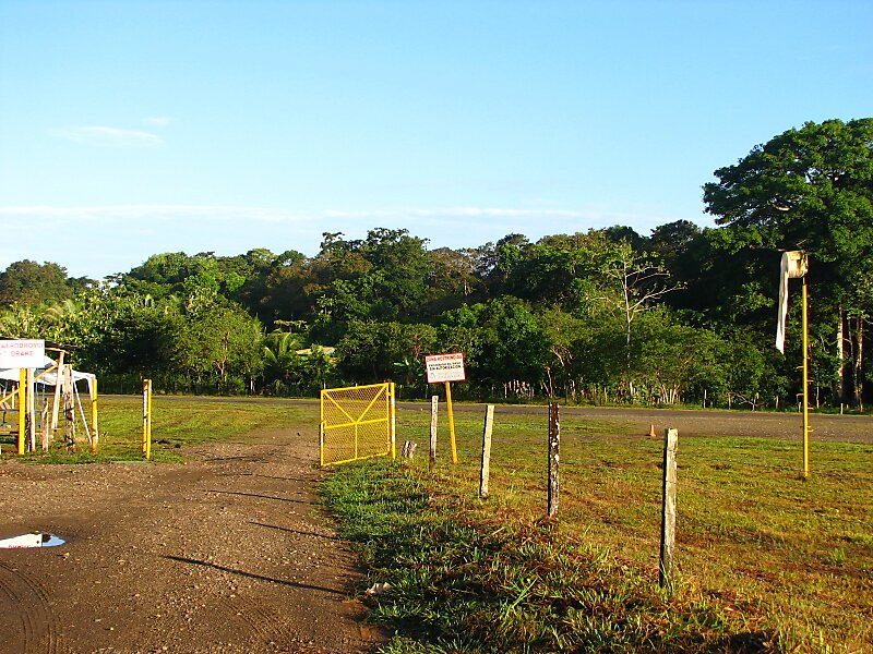 El aeropuerto está ubicado enfrente de la bahía, el pueblo y el resort turístico de Bahía Drake y tiene una sola pista pavimentada. Los vuelos ofrecen una vista espectacular de la bahía y la belleza natural que lo rodean. Hay un camino de acceso a Bahía Drake y hay taxis, pero la mayoría de los hoteles y lugares para quedarse son más fáciles de alcanzar por bote, sino, se necesita caminar un camino por la playa hasta su destino.