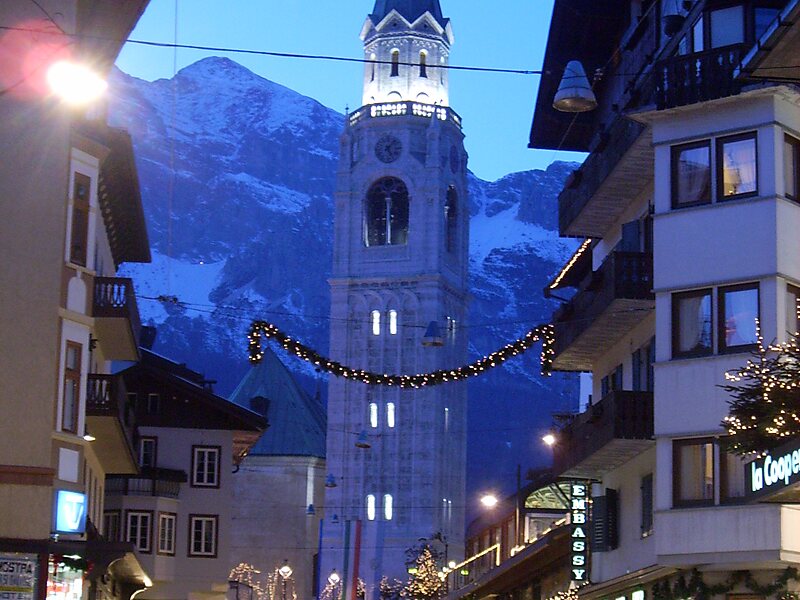 Cortina d'Ampezzo es una ciudad de la provincia de Belluno, en la región del Véneto, al norte de Italia. Se encuentra en medio de los Alpes Dolomitas, y es un importante destino turístico internacional, sobre todo en invierno, por sus pistas de esquí.