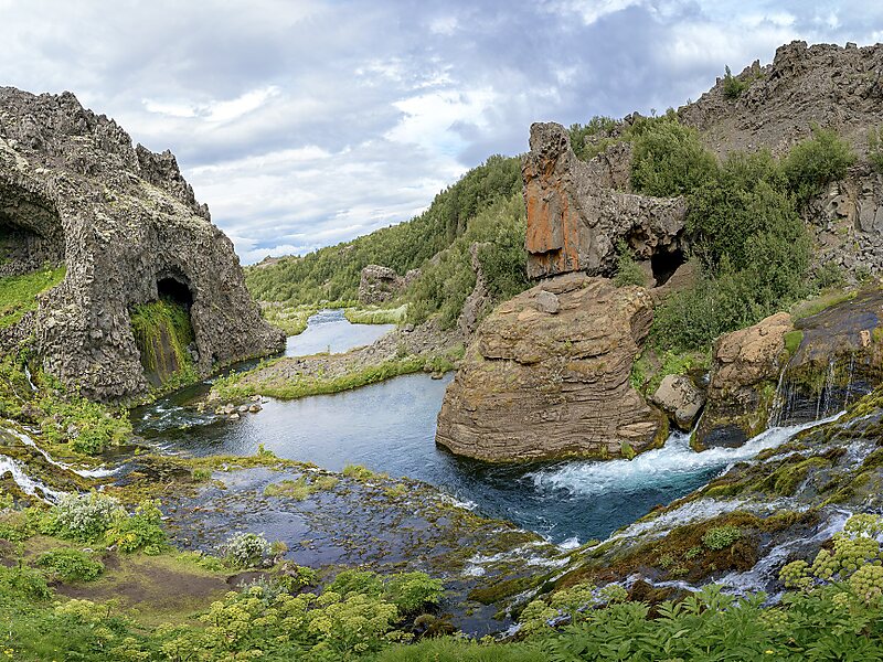 Gjáin es un valle que comprende pequeñas cascadas, lagos y elementos volcánicos. Se encuentra al sur de Islandia. El volcán Hekla puede verse desde el lugar.