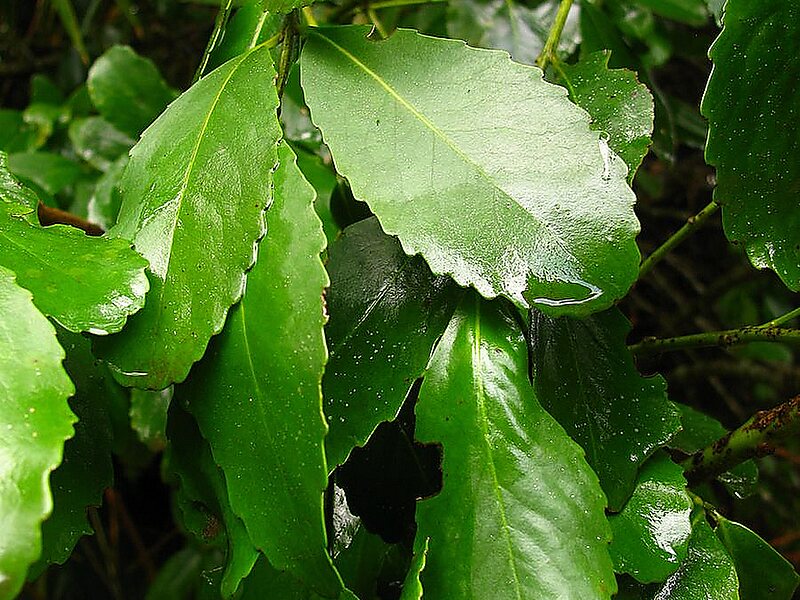 Latifoliada de hoja perenne, abundante en el bosque tipo valdiviano perennifolio del sur de Chile.