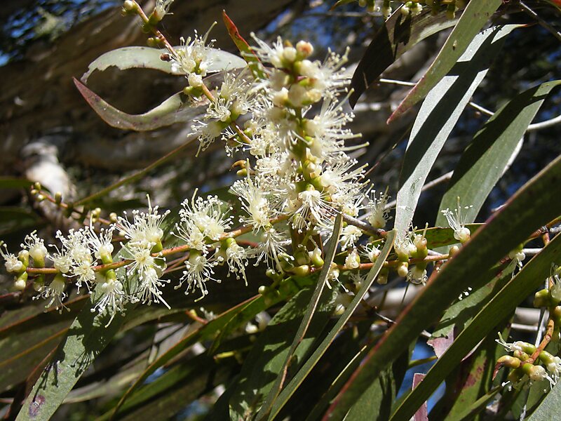 Es un árbol perenne que puede alcanzar hasta los 25 m de altura con una corteza que se resquebraja. Las hojas de hasta 1 dm de largo son de color ceniciento, gruesas y lanceoladas. Las flores pequeñas de color crema se reúnen en espigas terminales.