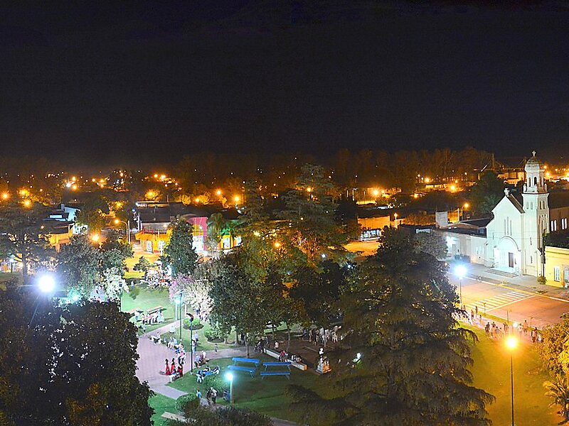 Ubicada en la Pampa húmeda, a 250 km de la capital provincial Córdoba y nacida como estación de FFCC del Ferrocarril Central Argentino.