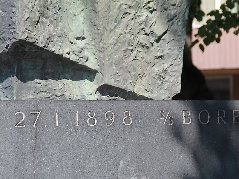Patsaan jalustaan on yhdelle sivulle kaiverrettu myös päivämäärä 27.1.1898 ja teksti S/S BORE. Ångfartygs AB Bore -varustamon matkustajahöyrylaiva S/S Bore saapui muistomerkin kohdalle Aurajokeen 27. tammikuuta 1898. Laiva oli luovutettu tilaajalle 22. tammikuuta 1898 ja se lähti ensimmäiselle matkalleen kohti Maarianhaminaa ja Tukholmaa 29. tammikuuta 1898 ja aloitti turkulaisen talvimerenkulun.Veistos jalustoineen on korkeudeltaan 4,5 metriä.