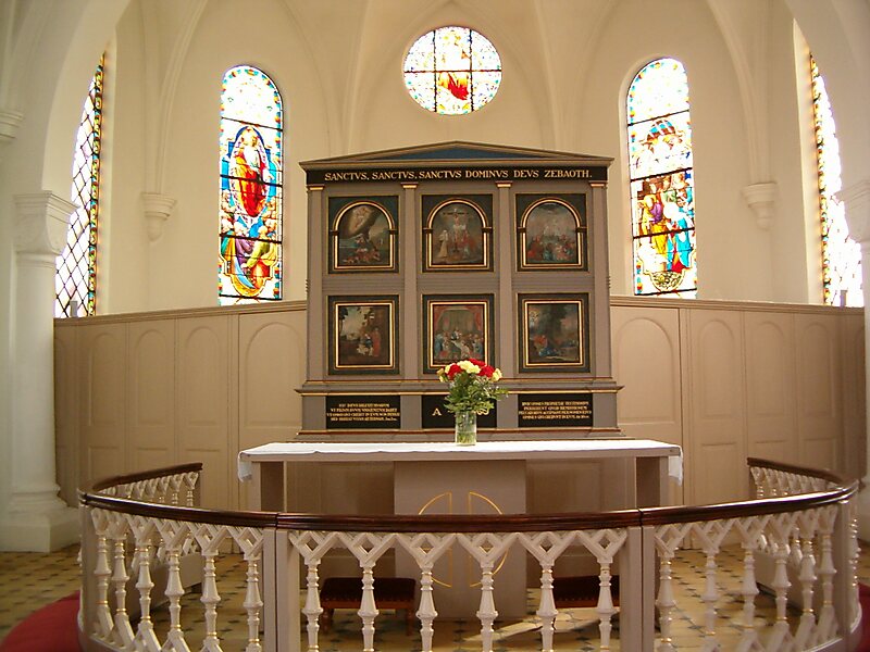 Alttari on tehty vuoden 1935 restauroinnin yhteydessä ja se on rekonstruktio vanhimman kirkon alttarista. Nykyiset urut ovat A. Mårtenssons Orgelfabrik AB:n tekemät 21-äänikertaiset vuodelta 1957.