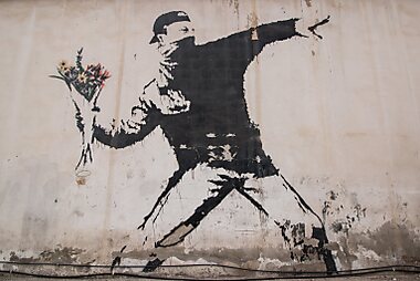 Cet immense pochoir est l'une des œuvres les plus emblématiques de Banksy.