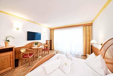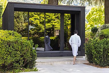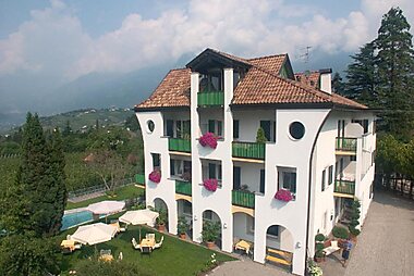 Hotel Burggräfler-Hof is set in the green countryside outside Meran, and is surrounded by a garden with swimming pool.