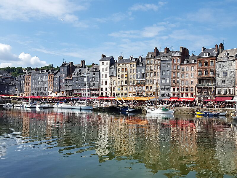 Elle est surtout connue pour son Vieux Bassin, caractérisé par ses maisons aux façades recouvertes d'ardoises, et pour avoir été maintes fois représentée par des artistes, dont Gustave Courbet, Eugène Boudin, Claude Monet et Johan Barthold Jongkind, formant l’École de Honfleur qui contribua à l'apparition du mouvement impressionniste. Alphonse Allais et Erik Satie y sont nés dans la même rue.